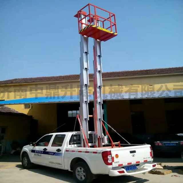 車載式鋁合金升降機(jī)產(chǎn)品介紹:把鋁合金式升降機(jī)安裝在汽車上的高空作業(yè)設(shè)備。適用場所:市政建設(shè)維護(hù),路燈照明,公路設(shè)施維護(hù),工程搶修,園林修車等。