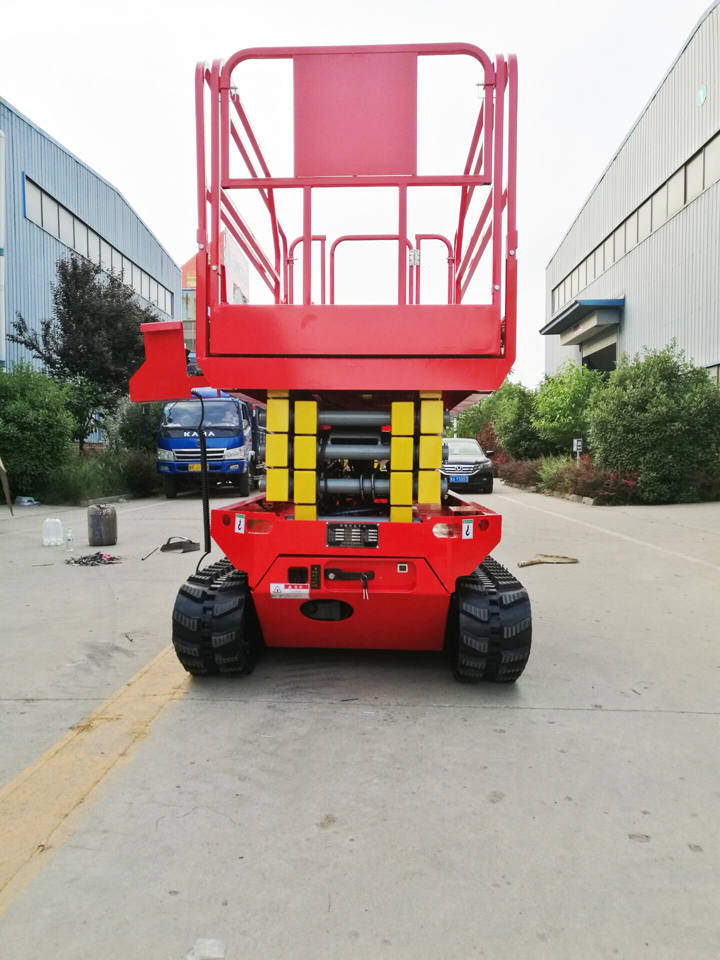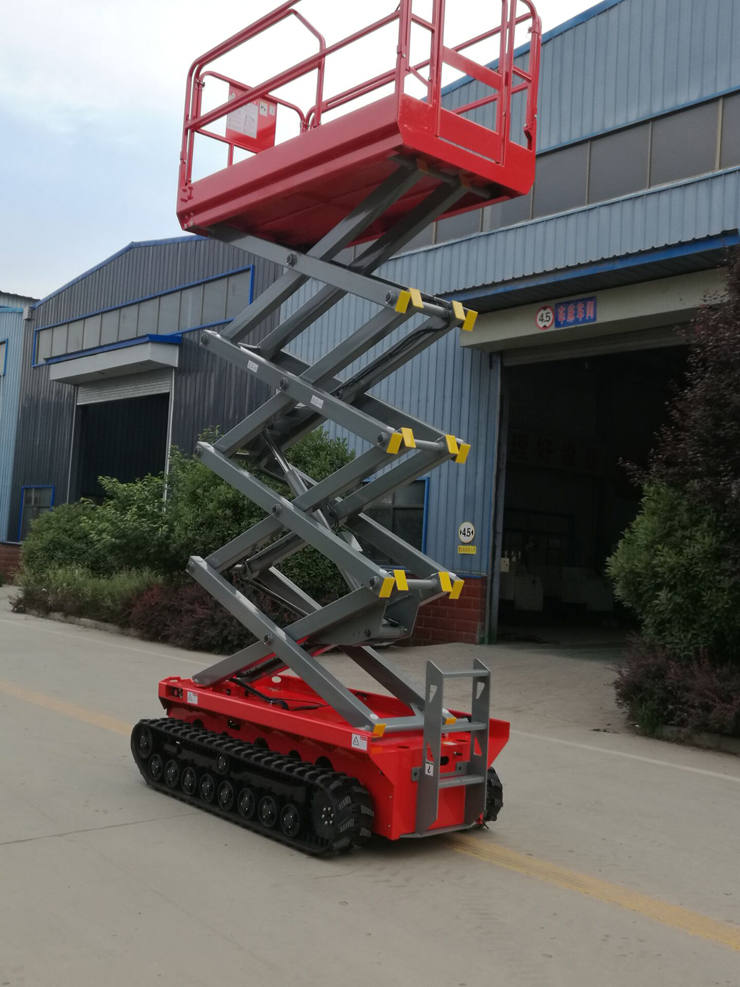 履帶式液壓升降平臺(tái)采用加重底盤(pán),工作時(shí),不需要支腿,在升降機(jī)升起后,不需要不把升降機(jī)收起即可行走,提高了工作效率,同時(shí),它的履帶式車(chē)輪,增加了與大地接觸的面積,在野外泥濘道路上也可行走和工作,是石油勘探、野站部隊(duì)通信線路安裝施工等野外高空作業(yè)的理想設(shè)備。